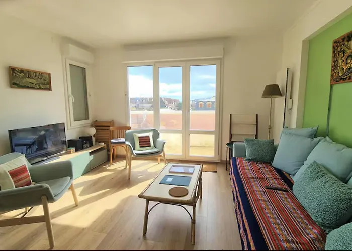 O apartamento Le Spacieux Vue Mer Cabourg de 65 m² está localizado a 6 minutos a pé de Plage de Cabourg e tem vista para à cidade. Os hóspedes deste apartamento à beira-mar, situado perto do Casino de Cabourg, podem relaxar numa terraço.
